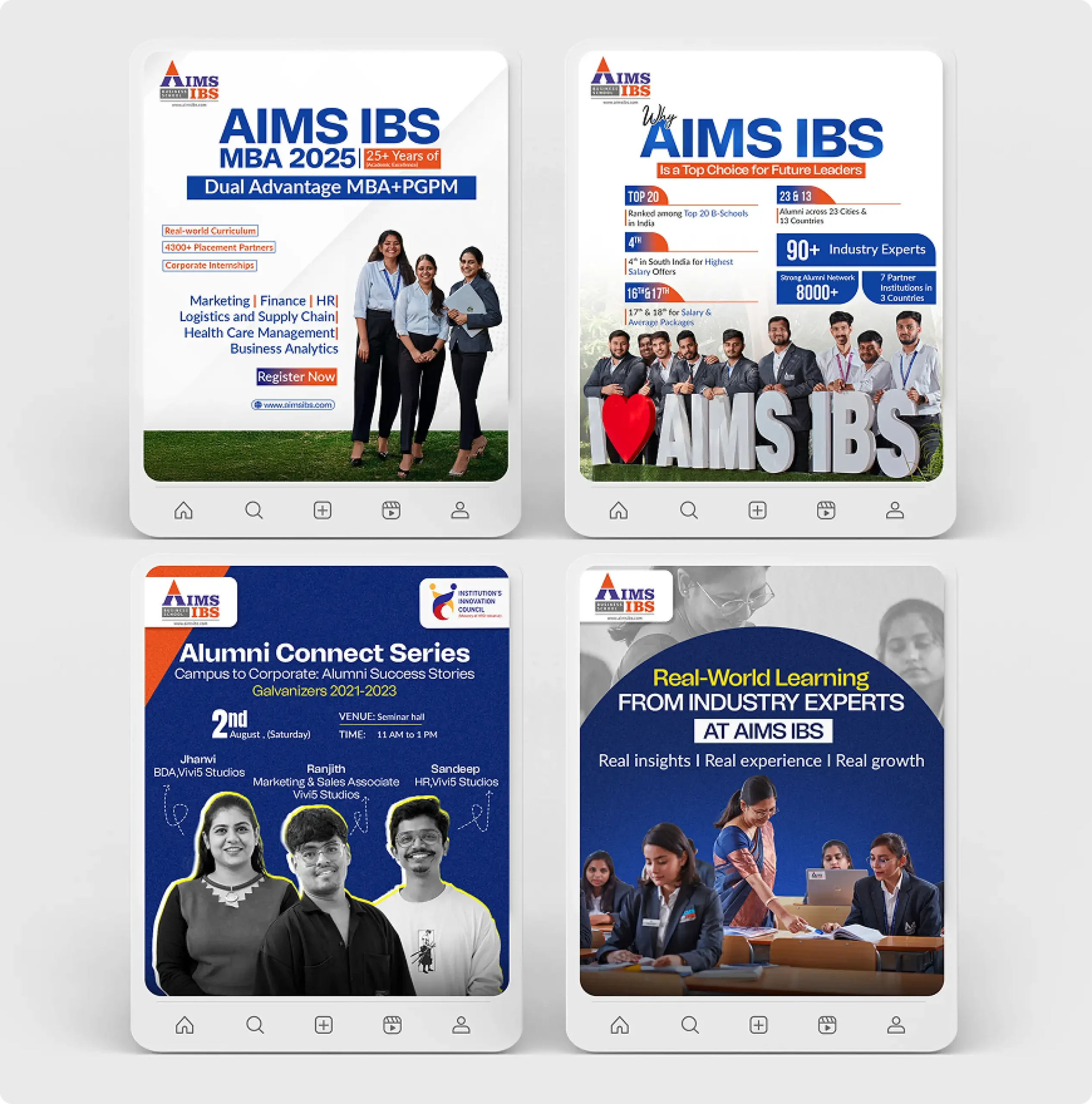 Our strategic campaign, “Legacy of Leaders, Future of Excellence,” combined high-impact digital advertising, precision-driven lead generation, AI-powered nurturing, and a visually compelling social media strategy. This approach strengthened AIMS IBS’s positioning as a premier destination for management education and delivered measurable results.