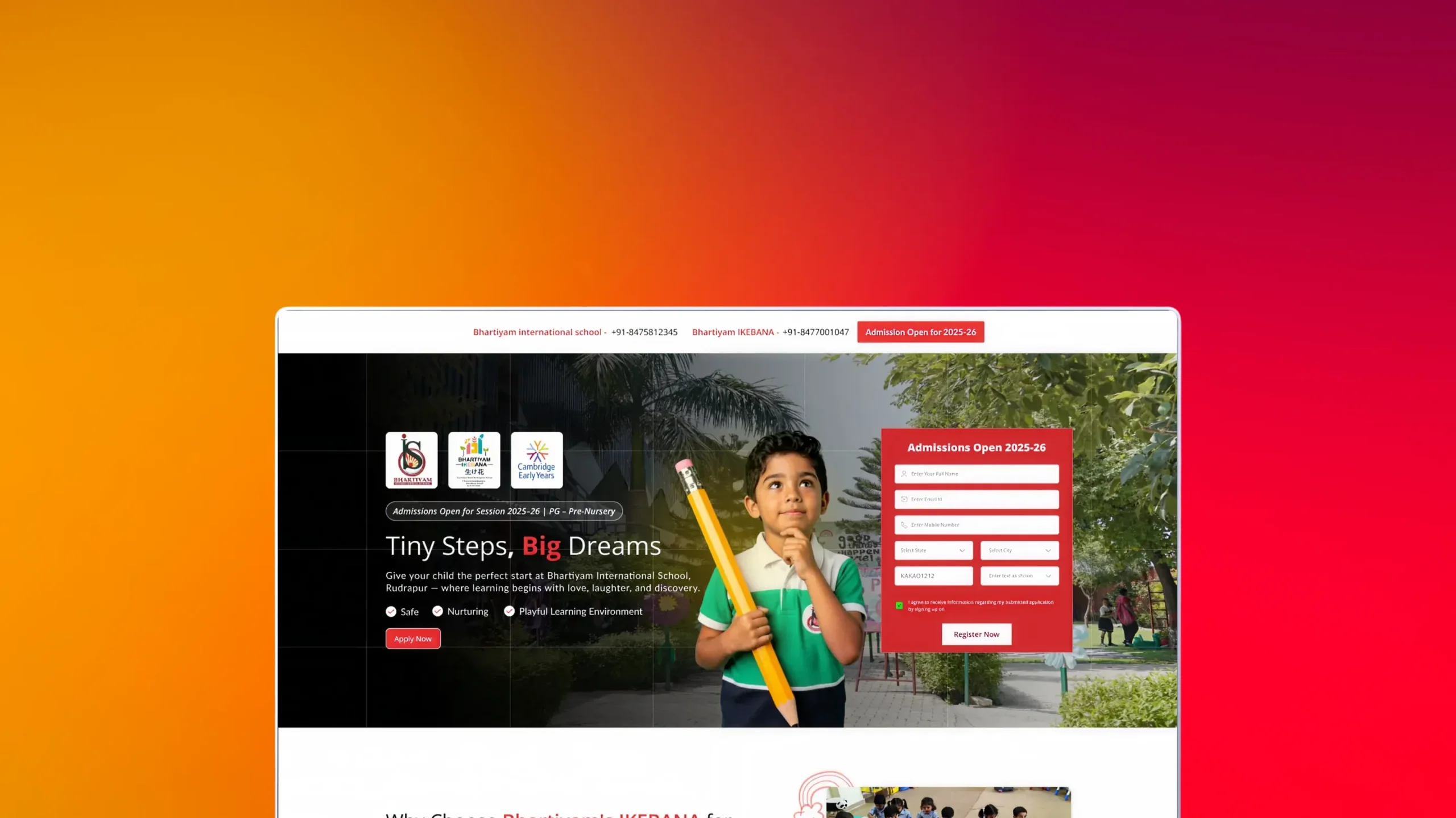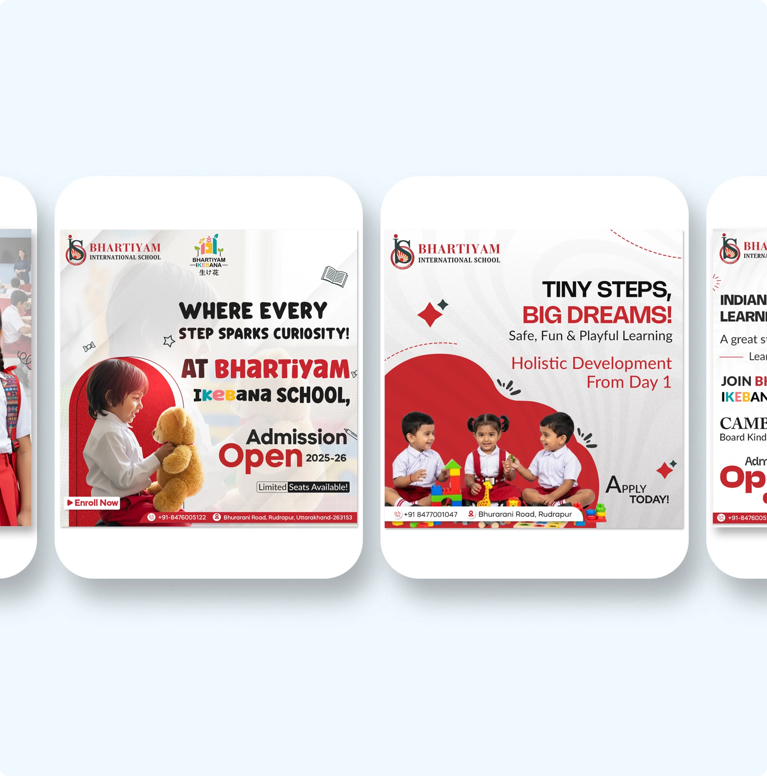 A premier K-12 institution in Uttarakhand, Bhartiyam International School partnered with Mediagarh to do more than just fill seats—we redefined how the school communicates its vision of “Beyond Ordinary” education. By spotlighting its world-class infrastructure, the prestigious Cambridge Early Years curriculum, and a student-first philosophy, we helped BIS solidify its position as the region’s leading destination for holistic development and academic rigor.