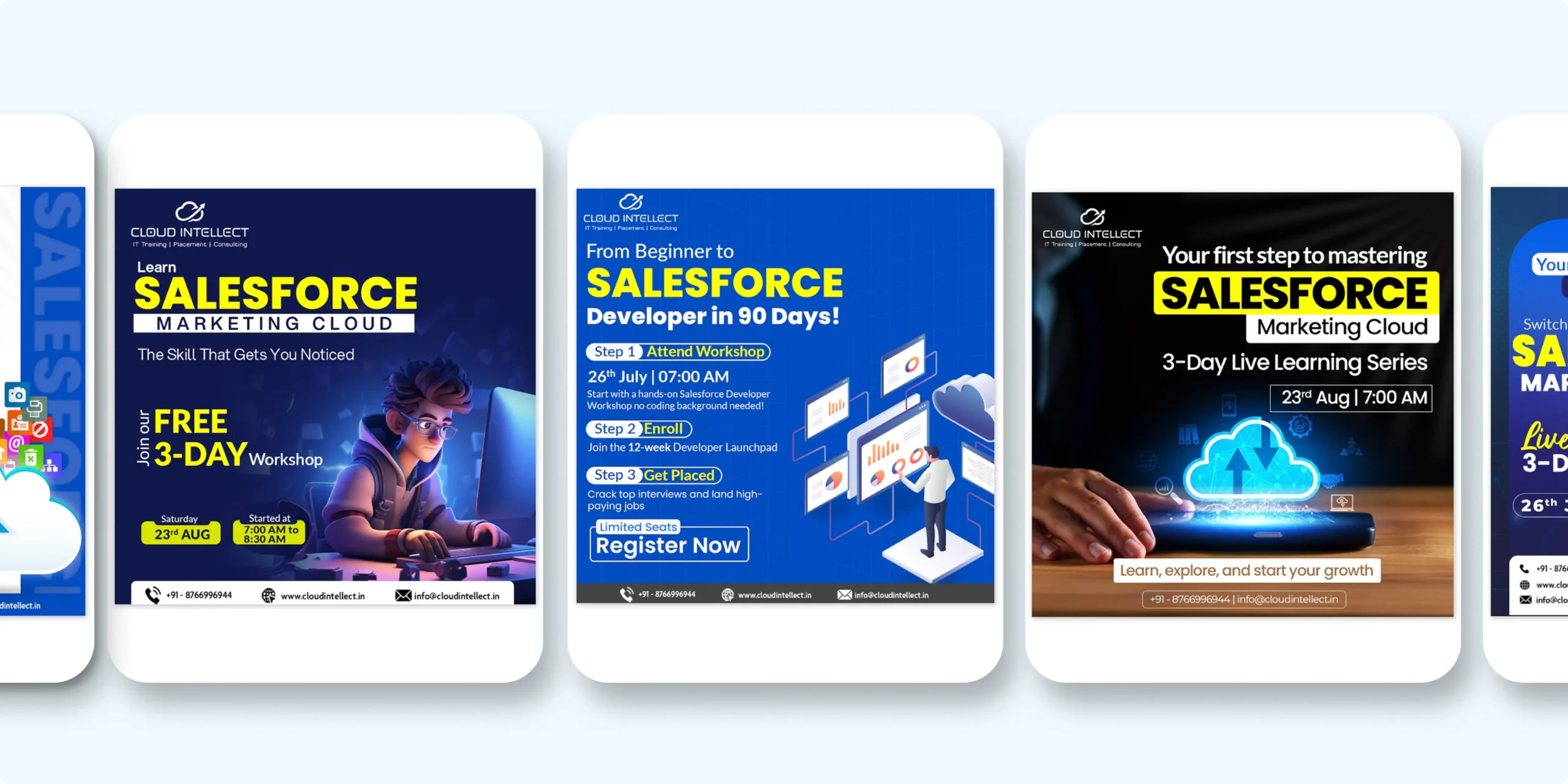 The journey started with compelling ad designs that showcased Salesforce programs and career success stories—grabbing the right audience’s attention.