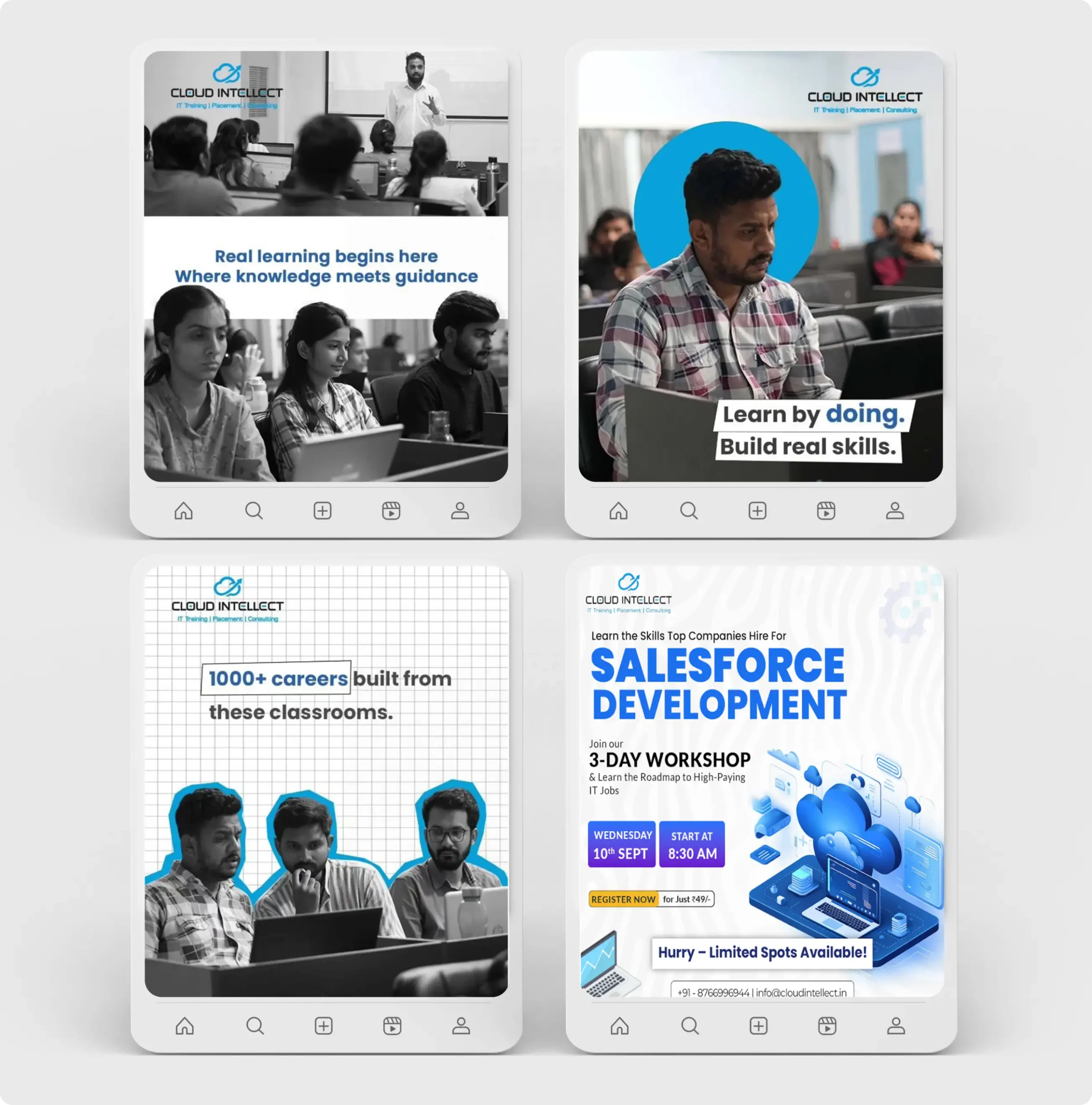 With optimized landing pages, precise ads, and compelling video content, Cloud Intellect reduced cost per lead to ₹45 and secured consistent enrollments across Salesforce programs.