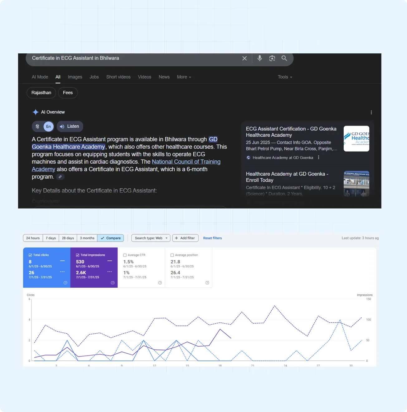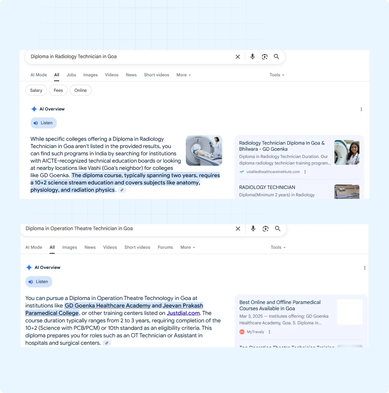 Strategic SEO optimization ranked GD Goenka’s website on the first page of Google for key paramedical education keywords, increasing organic visibility.