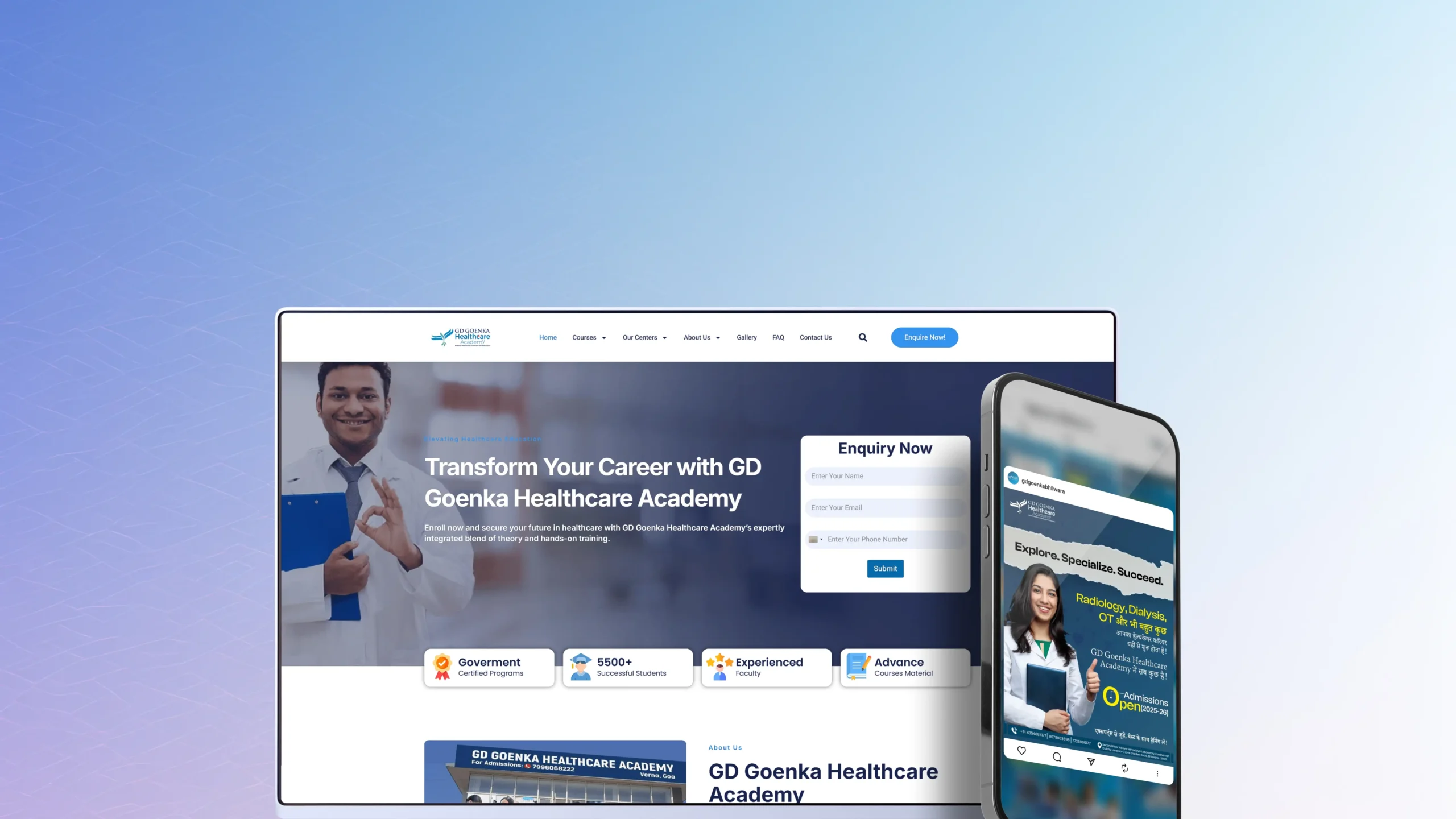 Mediagarh delivered a new website, first-page SEO rankings, and social media growth, helping GD Goenka Healthcare Academy establish itself as a leading paramedical brand.