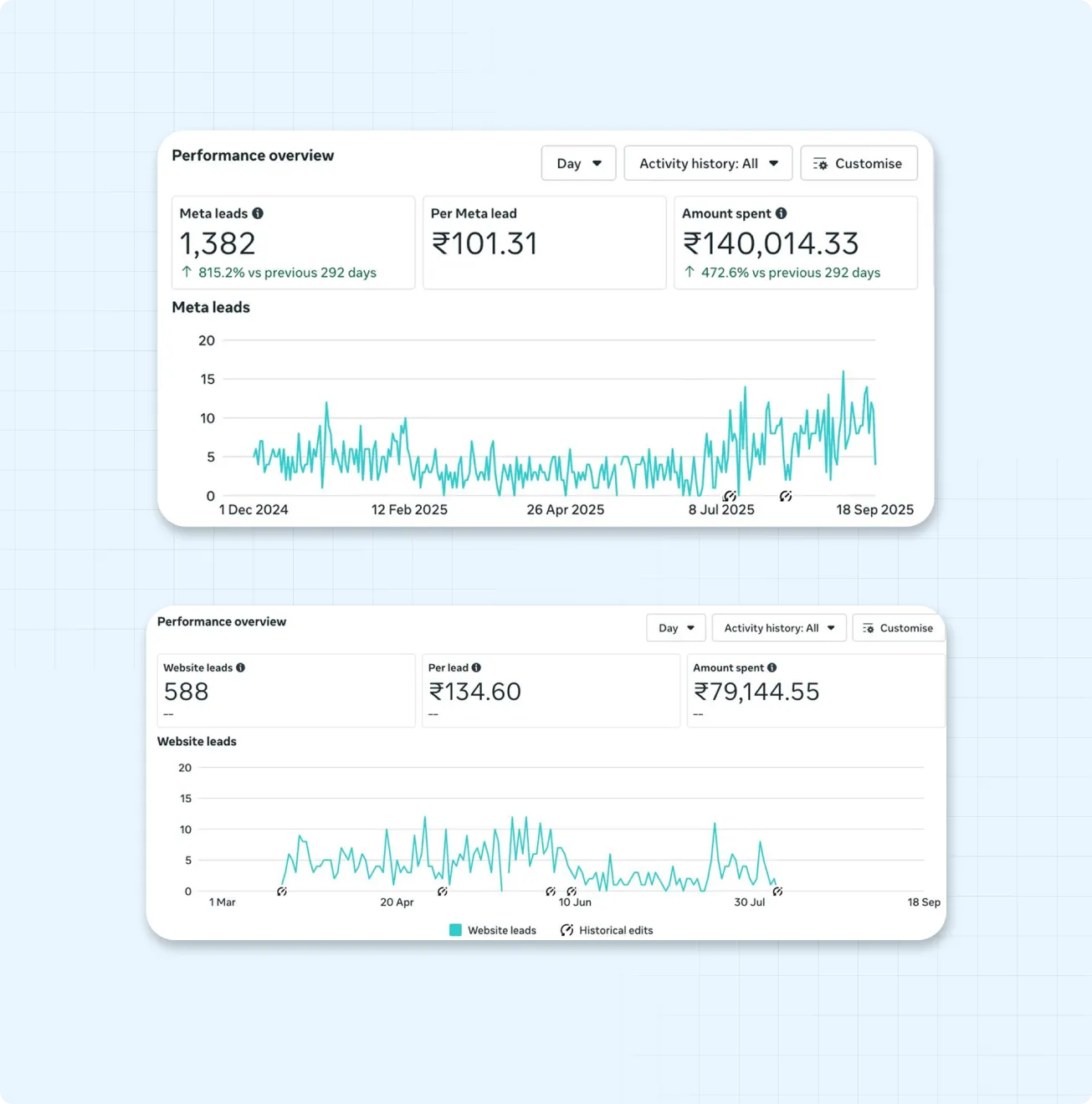 We ran multiple ad formats across Meta, including lead-gen, video-view, and retargeting campaigns. Each campaign was optimized for intent, ensuring that only serious prospects entered the funnel. This diversification helped capture investors at different stages of their decision-making journey.