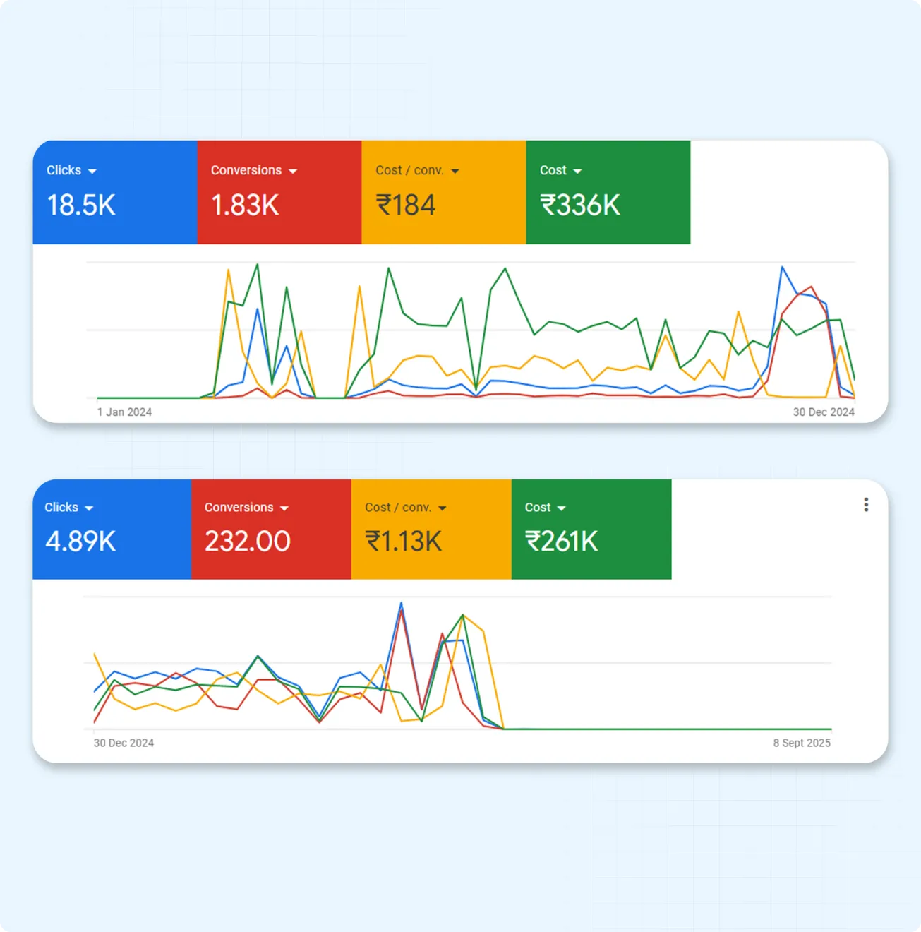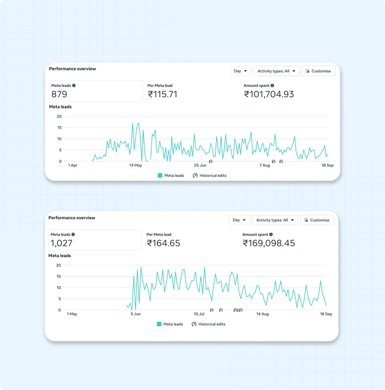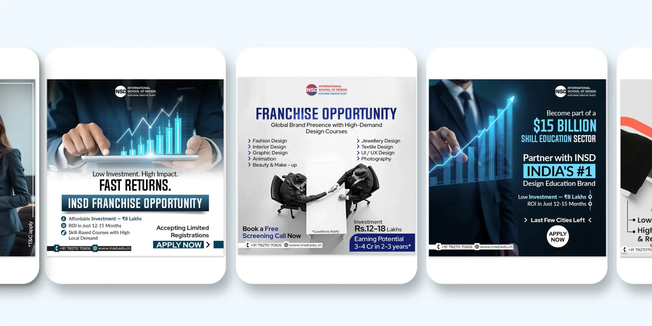 Instead of generic templates, we designed bold, ROI-driven creatives highlighting scalability and low-risk entry into the education business. These ads not only increased clicks but also reduced CPL significantly, making every rupee spent work harder.