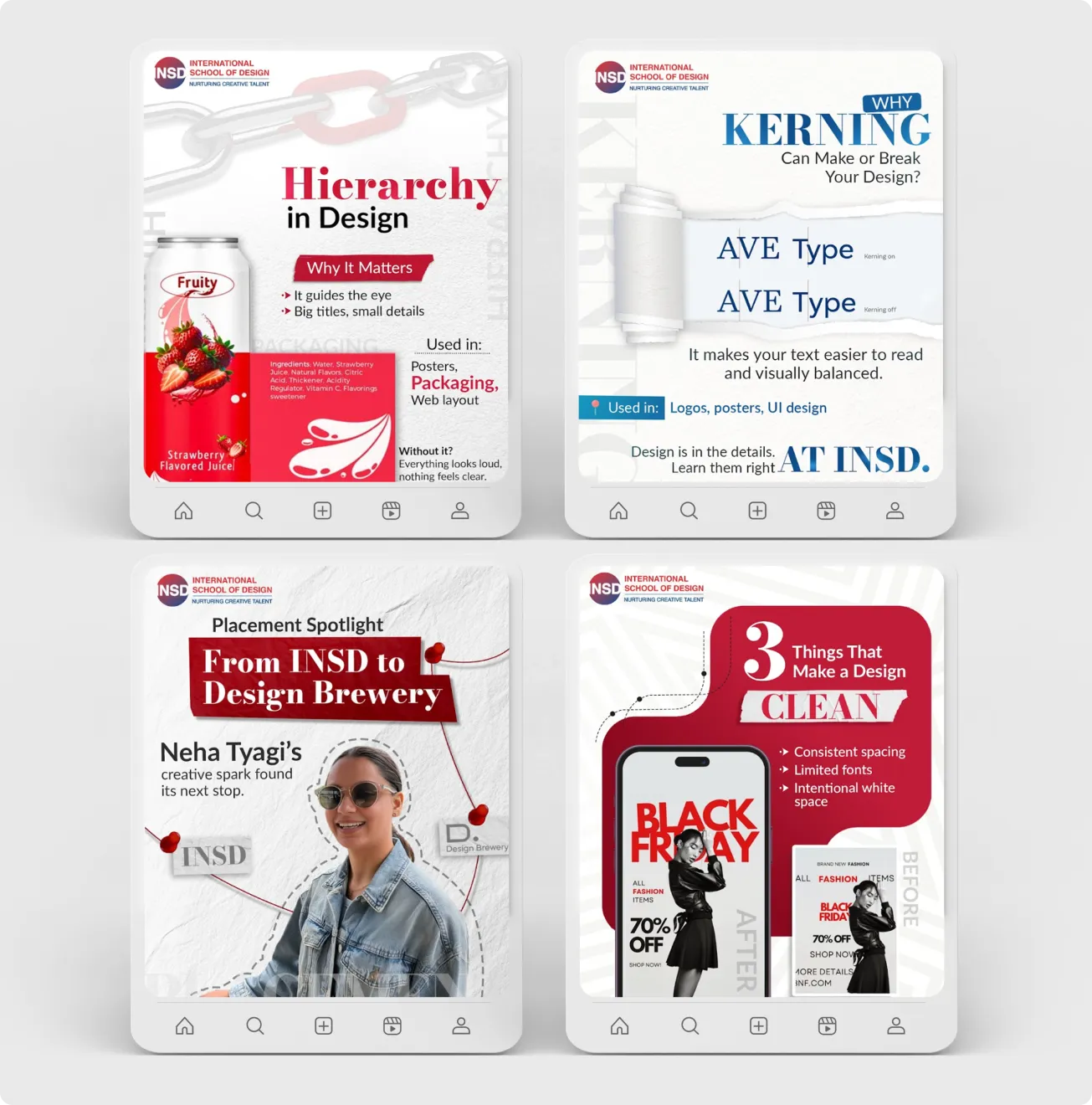 We created hyper-targeted campaigns for Fashion, Interior, Graphic, and Jewellery Design, each highlighting career opportunities, student work, and faculty strengths. Location-based targeting ensured relevance to aspirants in metro and tier-2 cities alike.