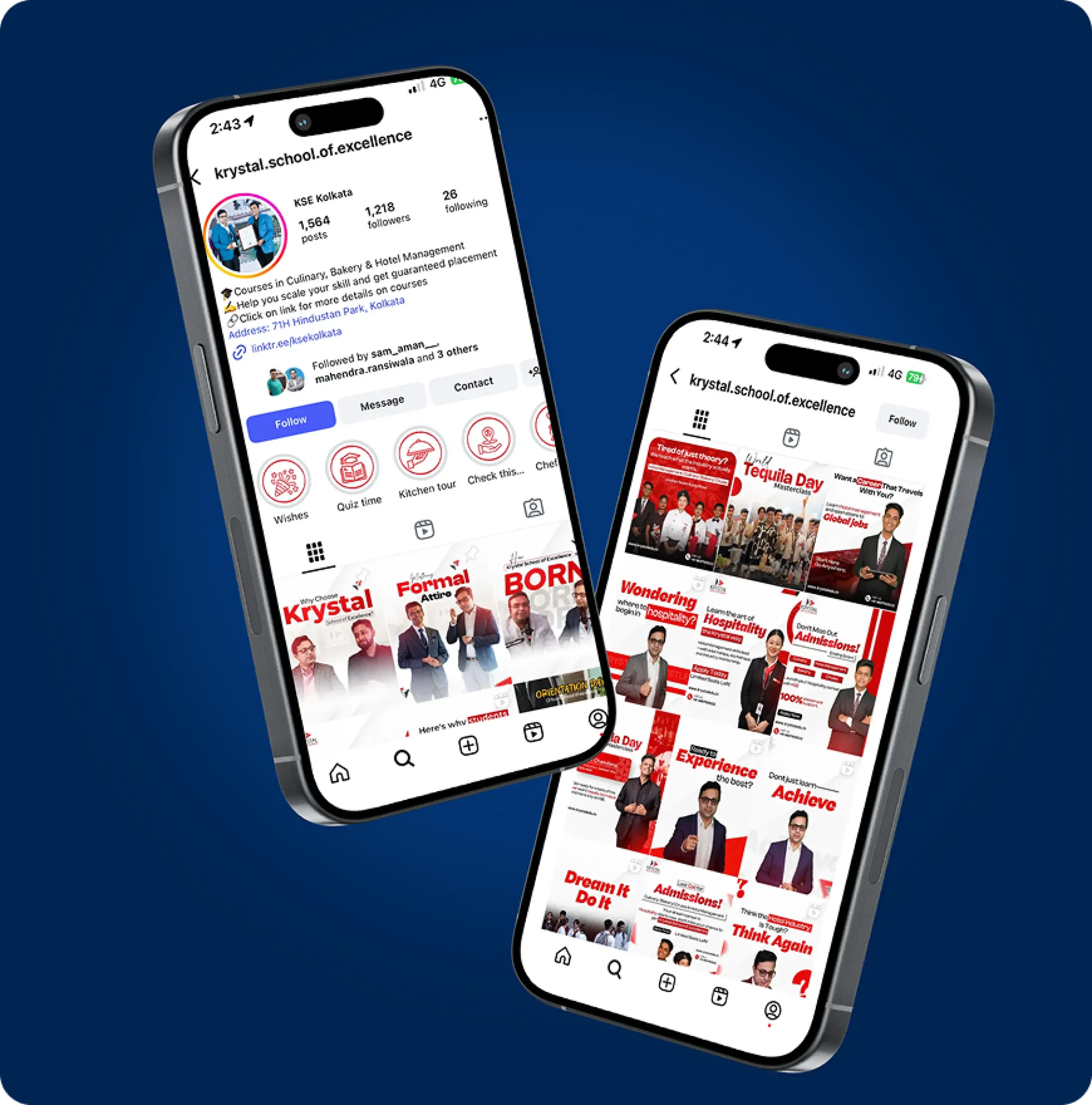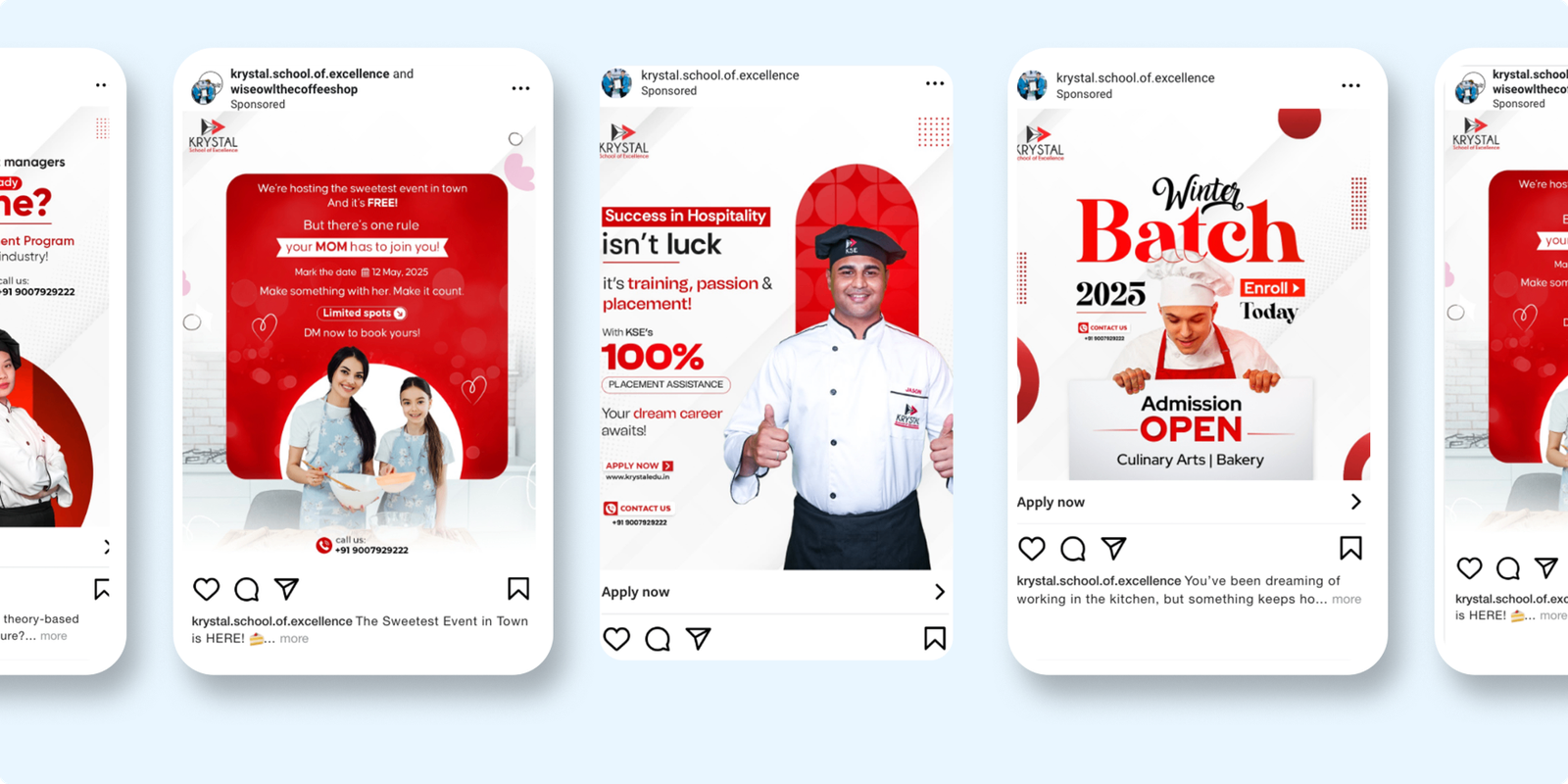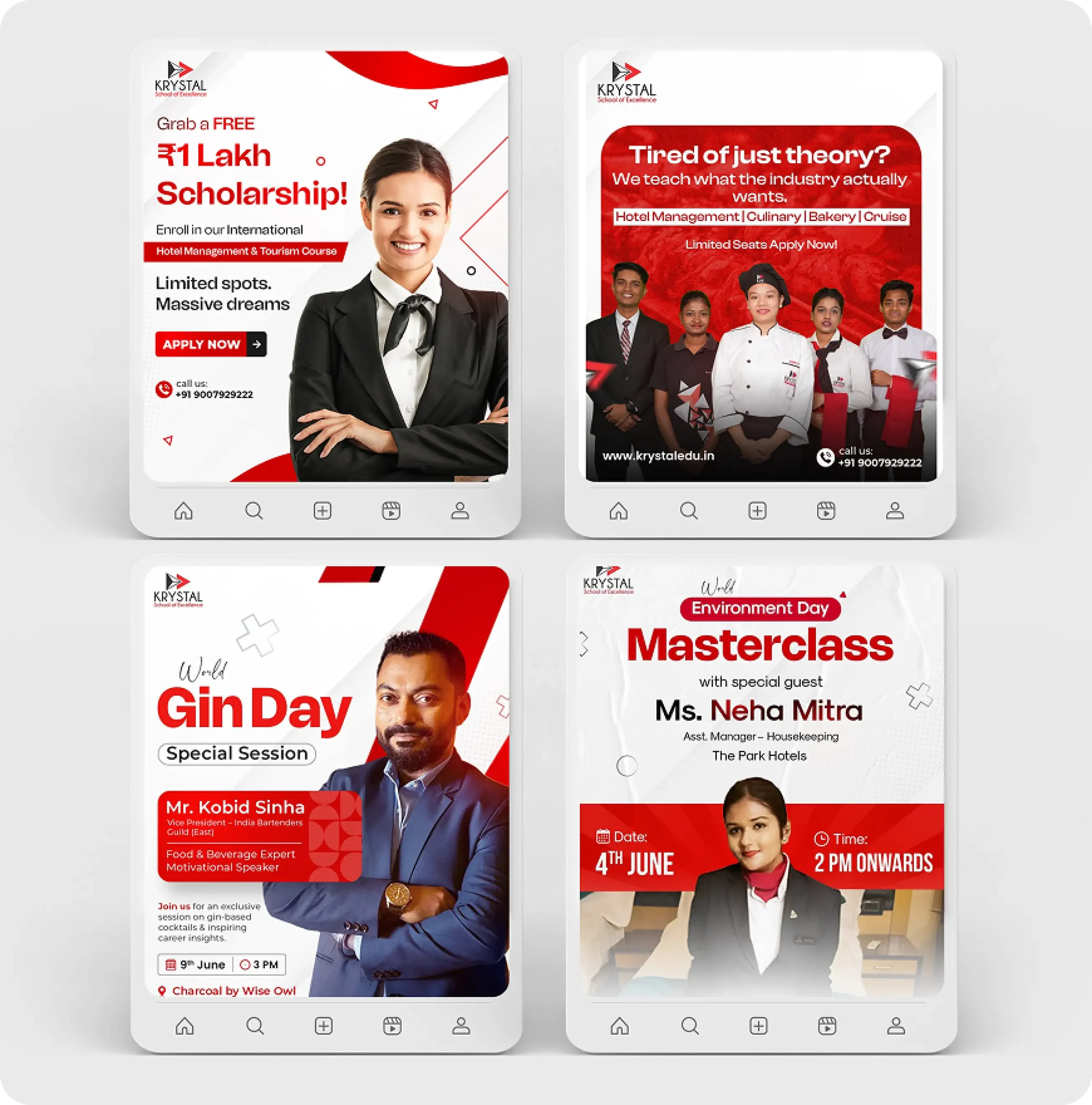 Krystal School of Excellence partnered with Mediagarh to increase student admissions and strengthen its digital presence. Focused on premier hospitality and culinary education, Krystal sought greater enrollment and brand visibility.