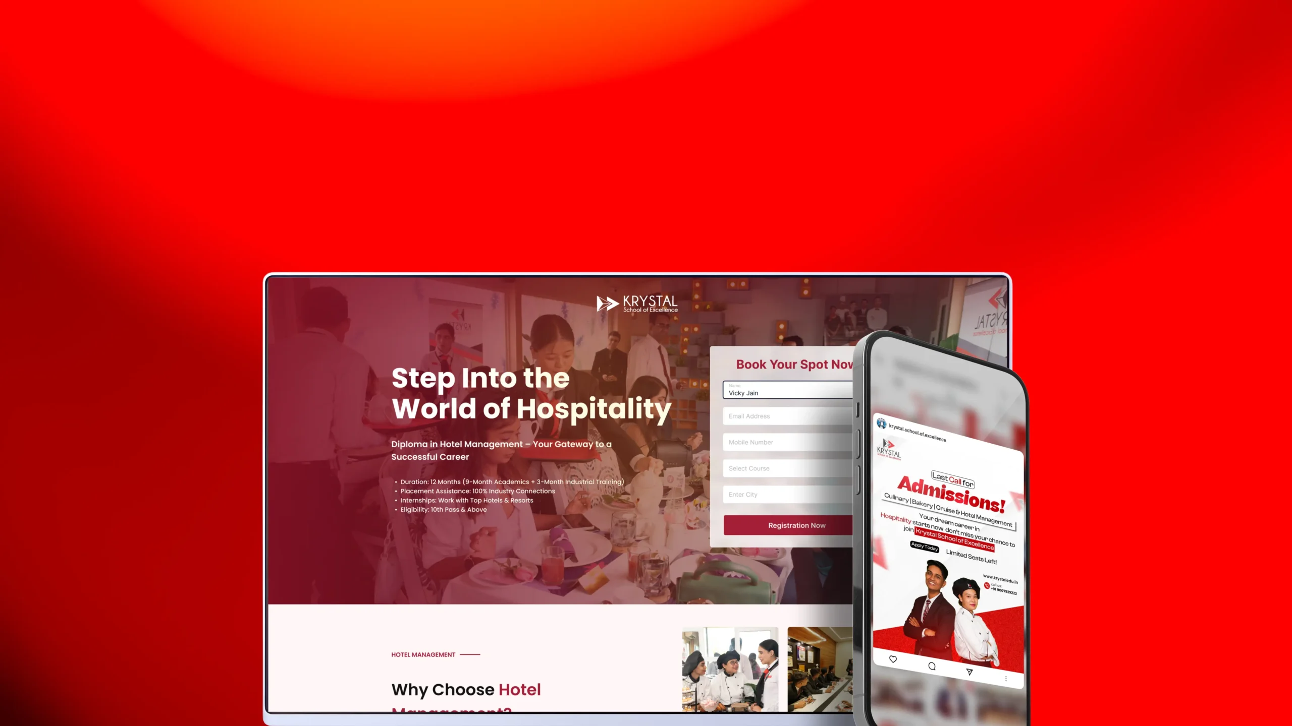 Krystal School of Excellence partnered with Mediagarh to increase student admissions and strengthen its digital presence. Focused on premier hospitality and culinary education, Krystal sought greater enrollment and brand visibility.