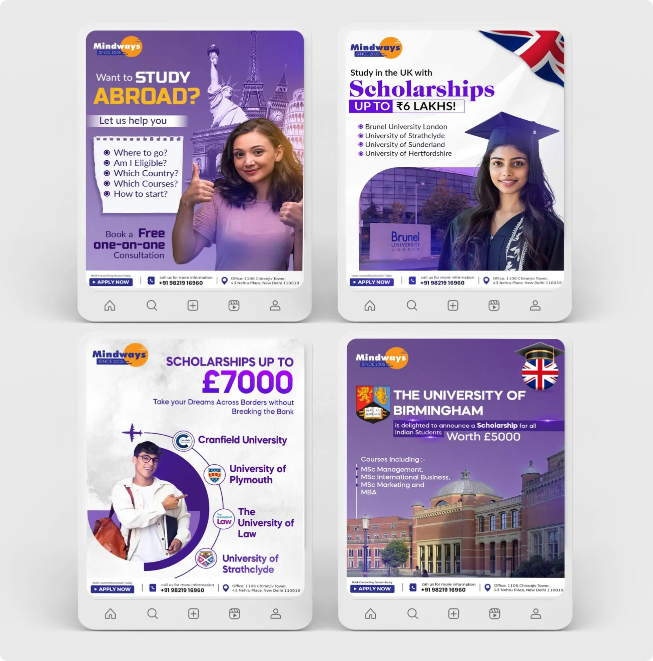 We reimagined Mindways’ social presence—fresh designs, student-first narratives, and consistent storytelling that built credibility and made the brand feel real to its audience.