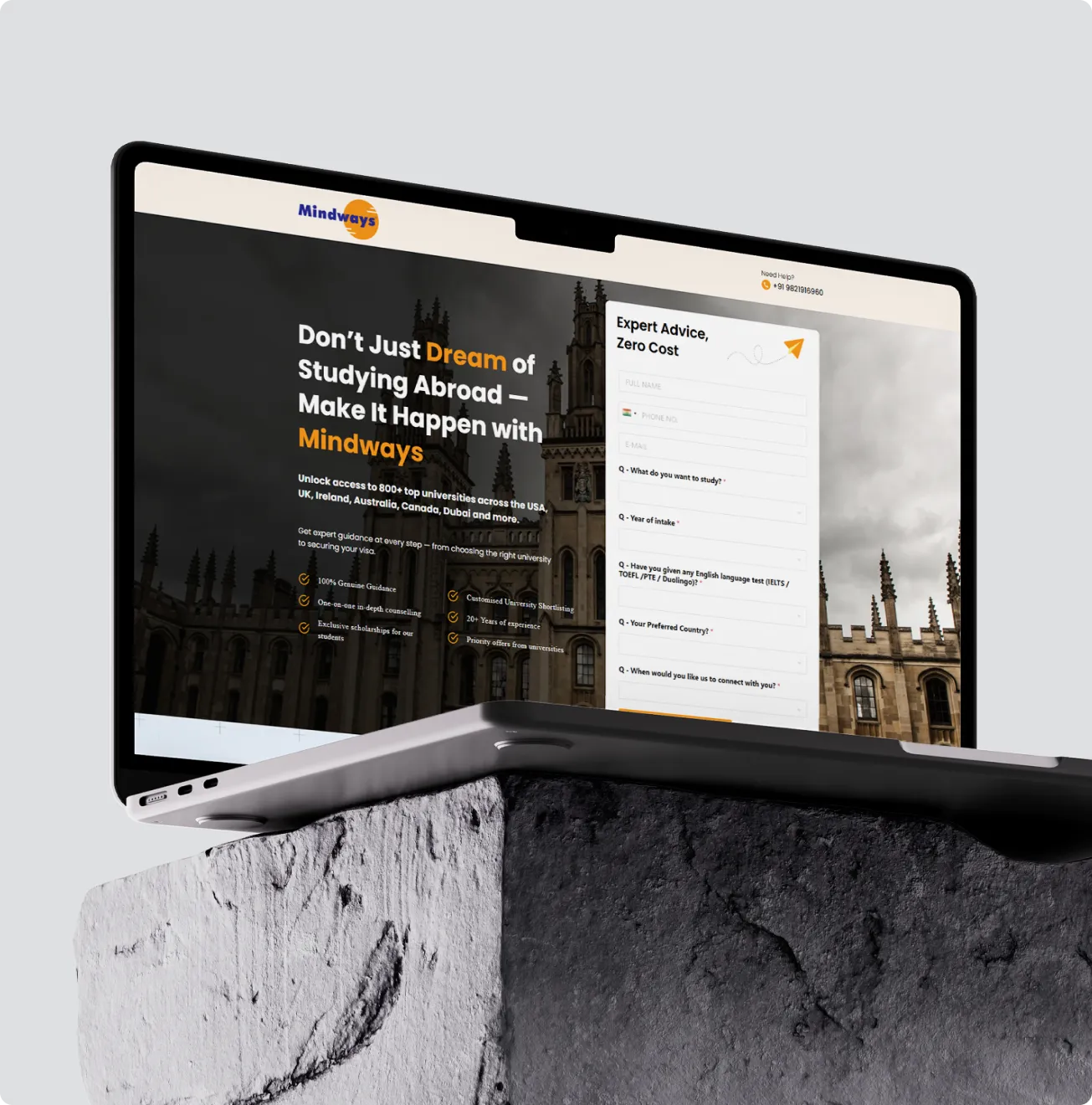 Mindways faced multiple challenges – low-quality leads, poor conversions, weak ad performance, and a lack of structured funnels. On top of that, their social media lacked brand credibility with outdated creatives, and their SEO visibility was minimal, making it hard for students to discover them online.