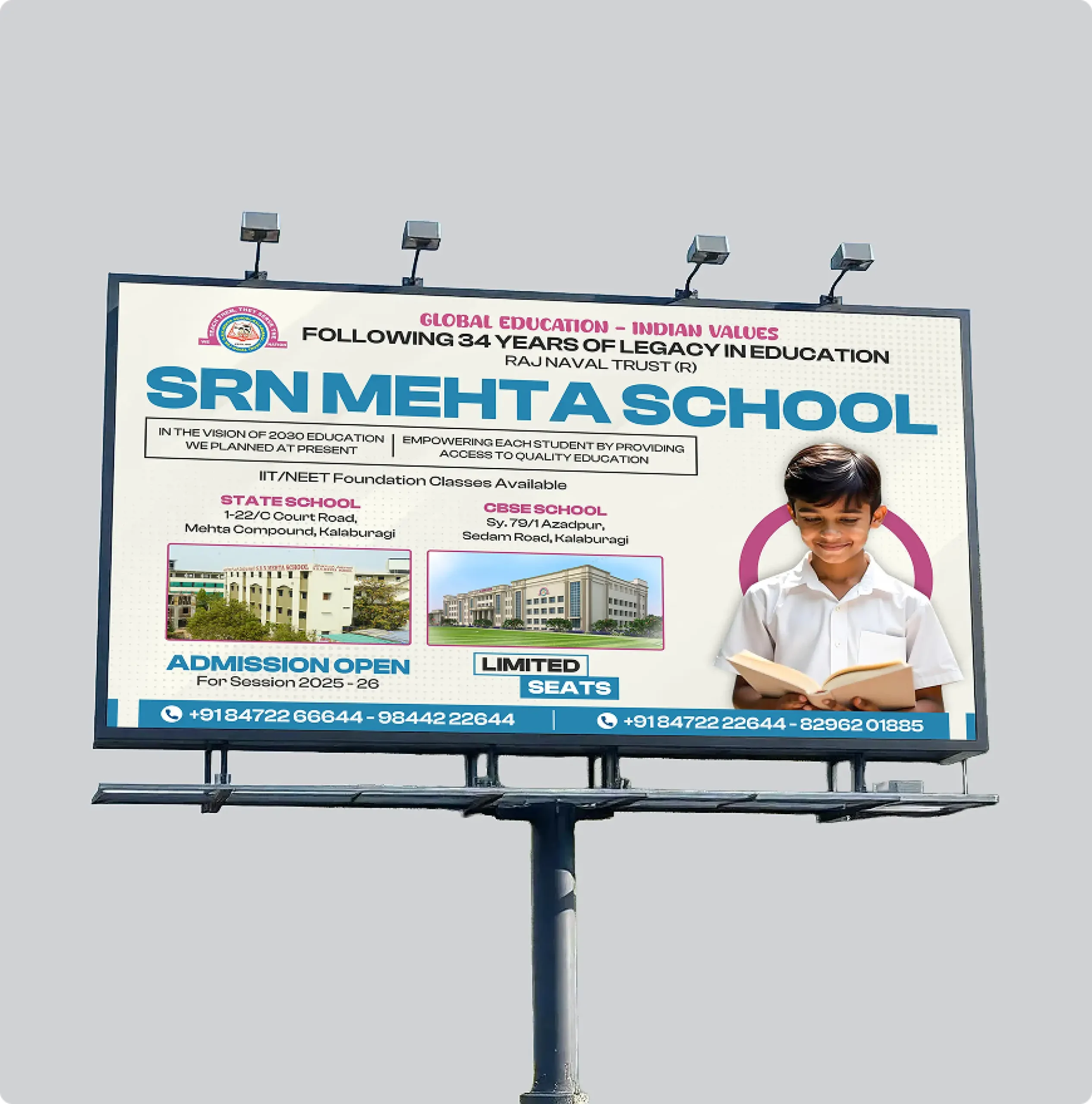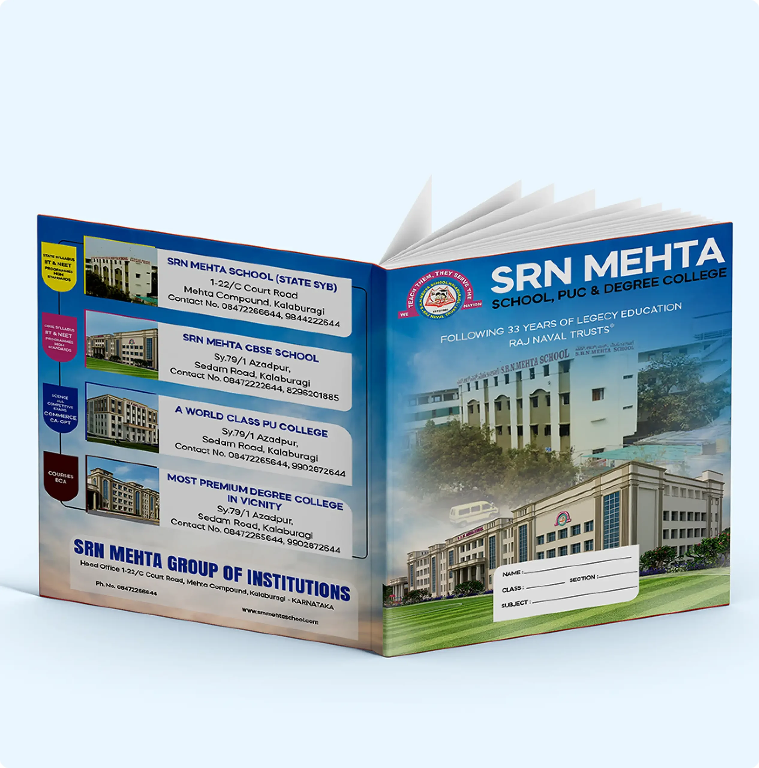 With a legacy of 30+ years and 6,000+ students, SRN Mehta School has grown into one of the most respected institutions in Gulbarga. Led by Mr. Pritam Mehta and Mr. Chakor Mehta, the school’s philosophy of “Change for Good” focuses on strong values, innovative curriculum planning, and active parental involvement.