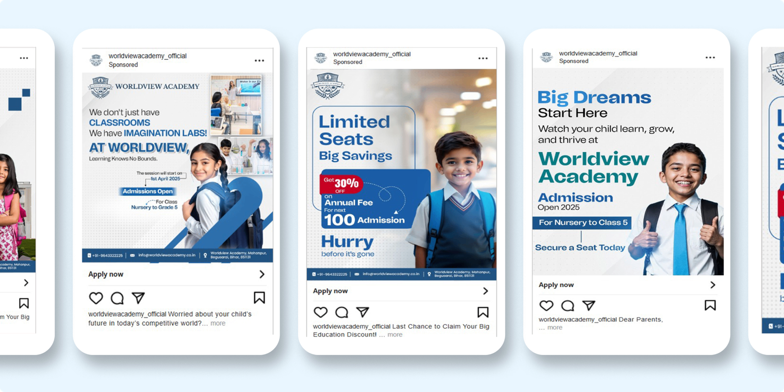 Our ad creatives showcased isolated targeting methods towards parents, streamlining ad efforts to drive student admissions efficiently.