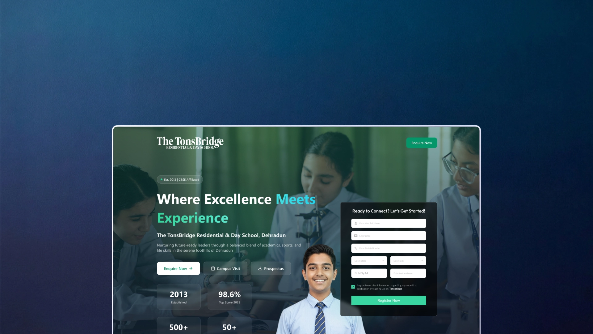 A benchmark of educational excellence in Dehradun, The TonsBridge School partnered with Mediagarh to bridge the gap between its prestigious physical campus and its digital identity. By creating a narrative centered on “Legacy, Leadership, and Life-Skills,” we transformed the school’s online presence into a high-performance engine for admissions and brand authority, ensuring it remains the first choice for parents seeking a premium K-12 experience.